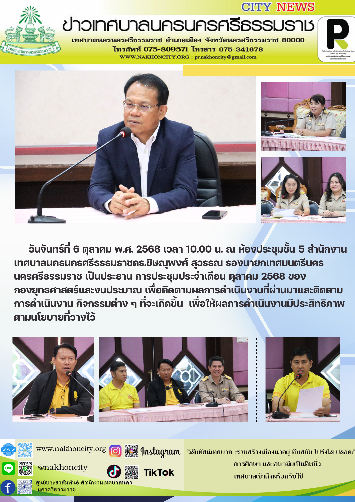 วันศุกร์ที่ 4 กรกฏาคม พ.ศ.2568 เจ้าหน้าที่งานป้องกันควบคุมโรค ลงพื้นที่ ณ โรงเเรียนเทศบาลวัดท่าโพธิ์ โรงเรียนเทศบาลวัดใหญ่ โรงเรียนเทศบาลวัดเสมาเมือง และโรงเรียนนานาชาติเทศบาลนครนครศรีธรรมราช เพื่อพูดคุยแนวทางในการดำเนินการ "โครงการเฝ้าระวัง ป้องกันและควบคุมโรคระบาดหรือโรคติดต่ออุบัติใหม่ ในเขตเทศบาลนครนครศรีธรรมราช
